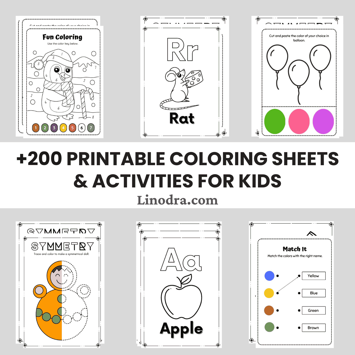 200+ Printable Coloring Sheets & Activities for Kids – PDF Pack with Color Matching, Flashcards & Cut-and-Paste Games